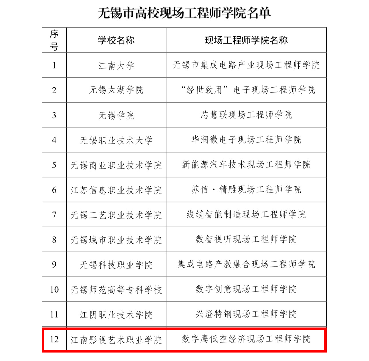 近日,无锡市教育局公布了2026年无锡市高校现场工程师学院名单,江南影视艺术职业学院数字鹰低空经济现场工程师学院成功获评。此次评选中,全市共有25个项目参与角逐,最终仅12个项目成功获批,这标志着江南影视艺术职业学院在精准对接区域产业需求,深化产教融合与校企合作、服务地方产业发展方面又迈上了新的台阶。